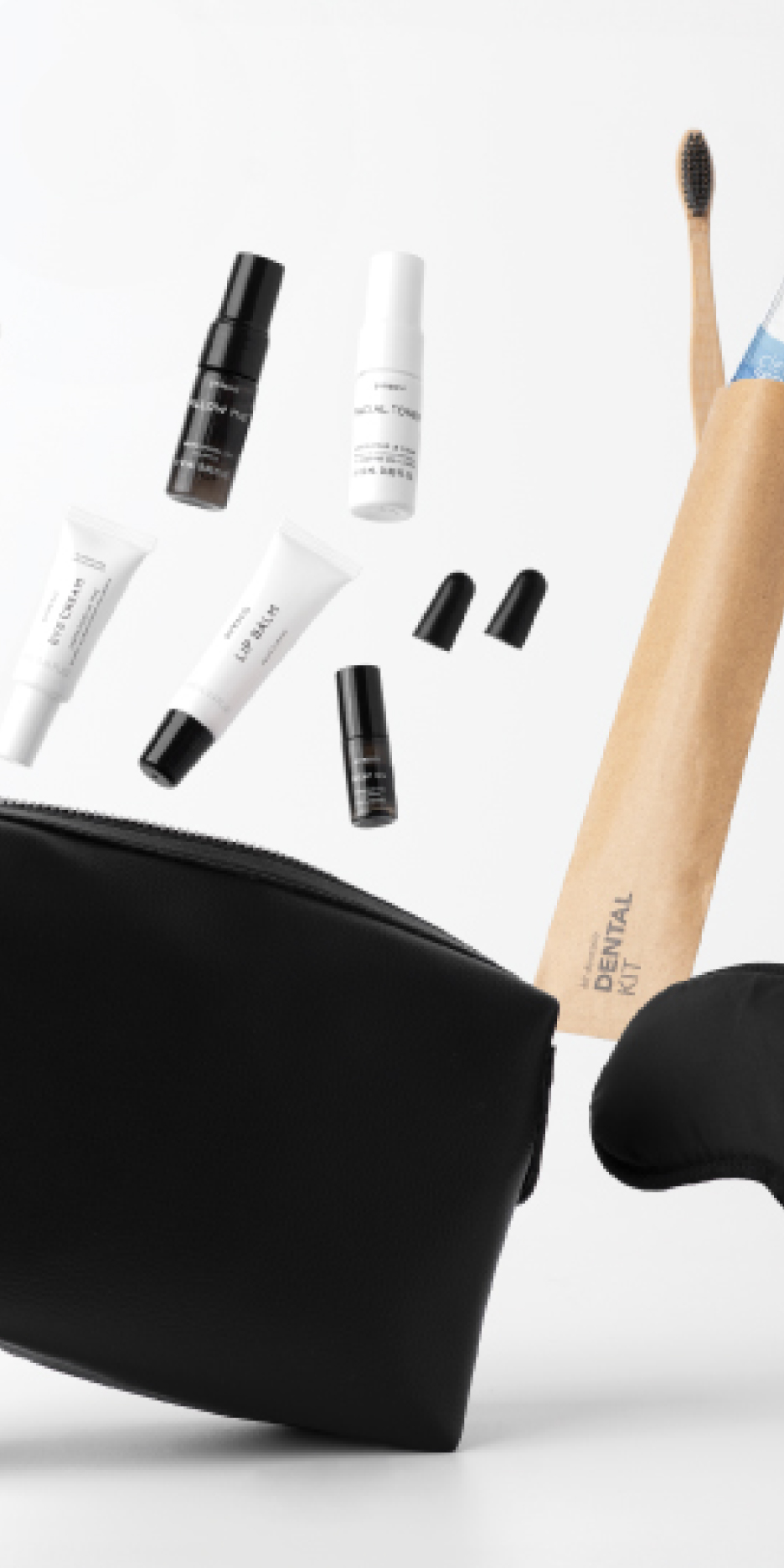 Our premium amenity kits combine luxury brands with finest beauty products, and thoughtfully designed bags, delivering exceptional quality and responsible curation.